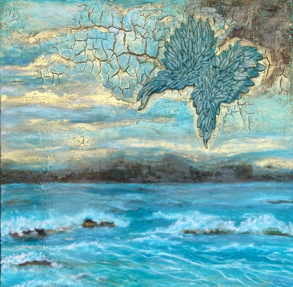 Der Flügel aus türkisfarbenem Terra-Egypt-Ton symbolisiert diese Hoffnung.