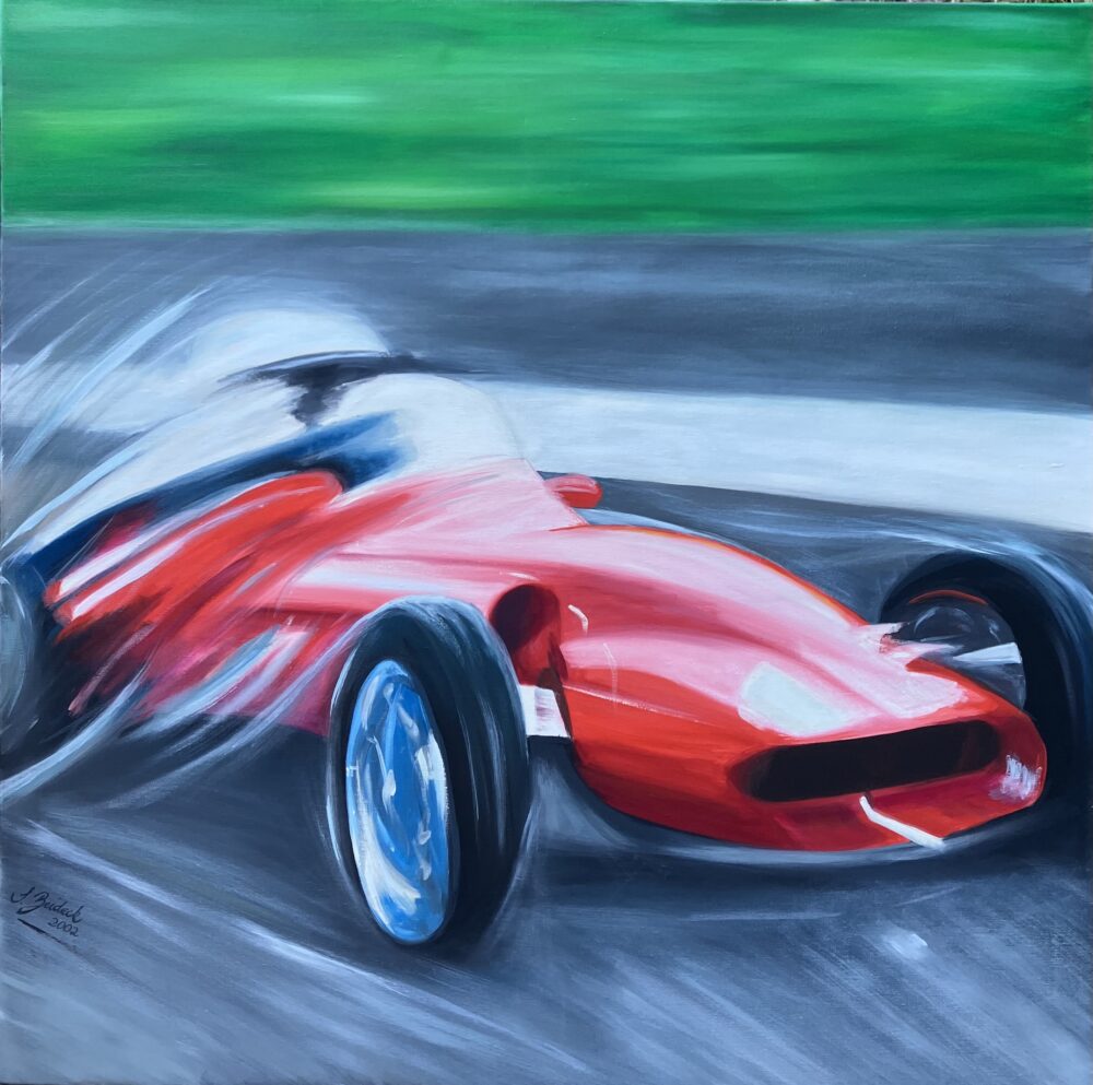 Bei diesem Bild wurde die Geschwindigkeit des Oldtimers eingefangen. Mit seinen leuchtenden Farben macht dieses Bild jedes Zimmer zu etwas ganz besonderem.